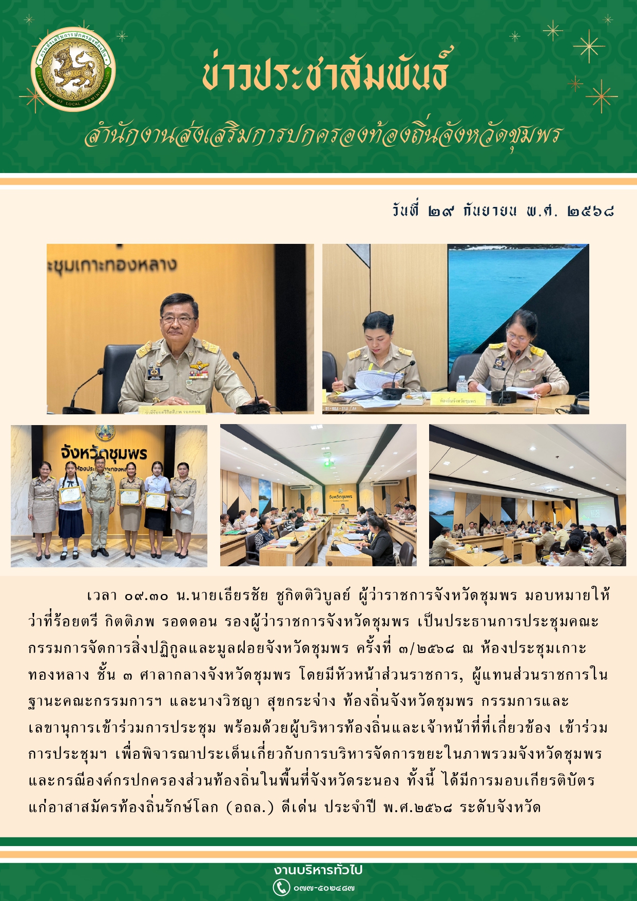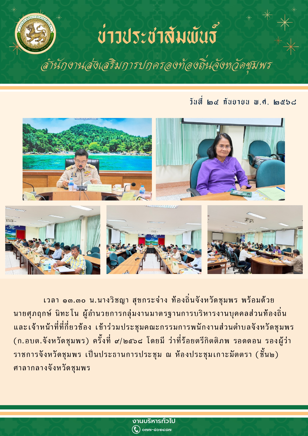 ประชุมคณะกรรมการพนักงานส่วนตำบลจังหวัดชุมพร (ก.อบต.จังหวัดชุมพร) ครั้งที่ 9/2568