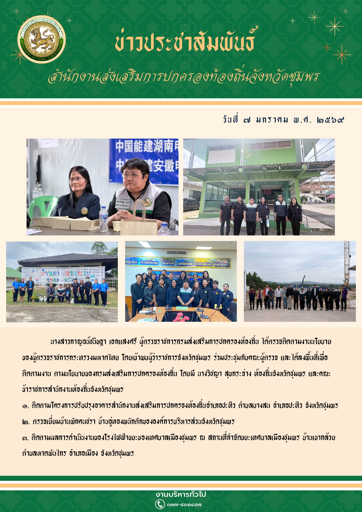 ผู้ตรวจราชการกรมส่งเสริมการปกครองท้องถิ่นได้ลงพื้นที่เพื่อติดตามงาน ตามนโยบายของกรมส่งเสริมการปกครองท้องถิ่น