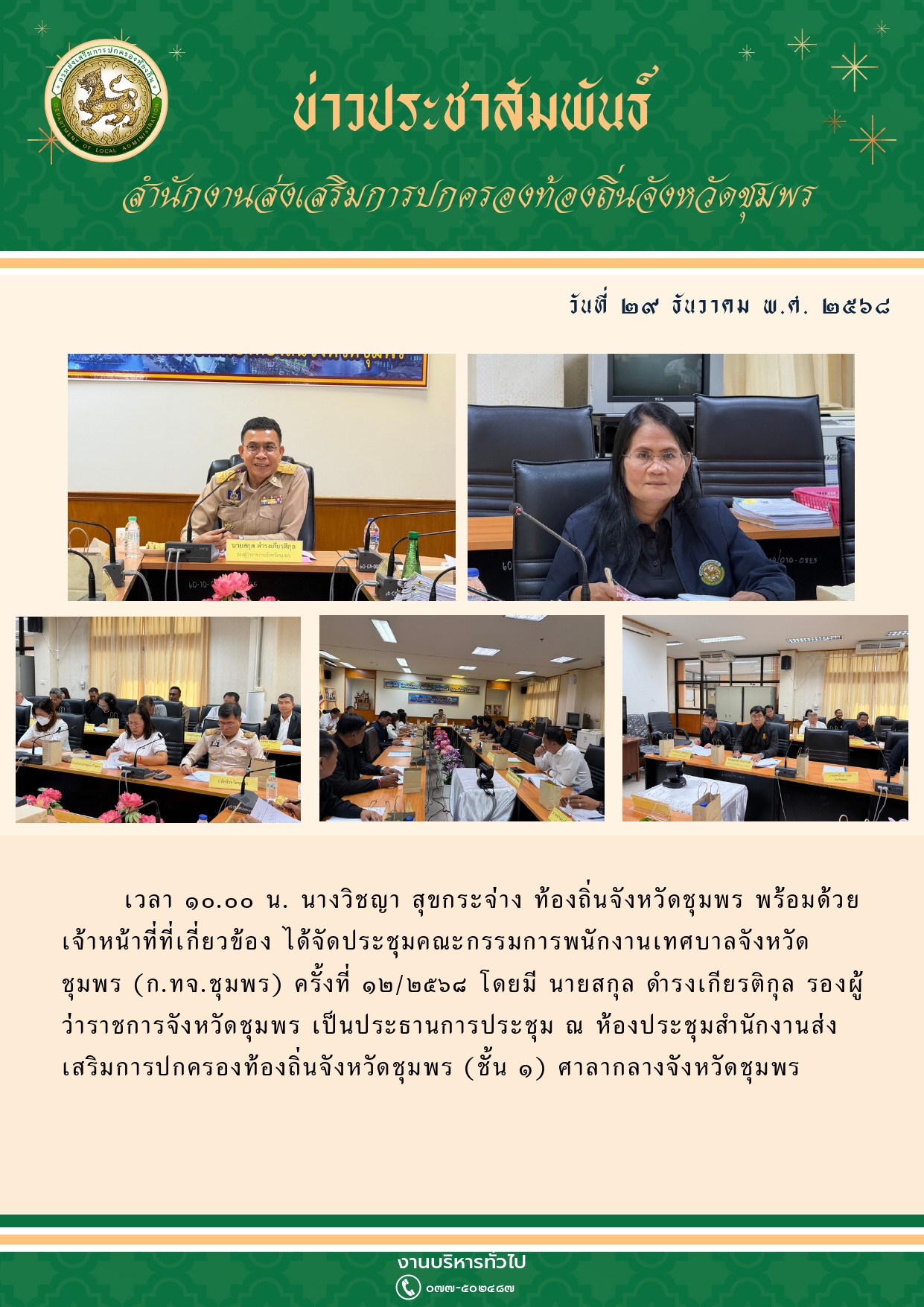 ประชุมคณะกรรมการพนักงานเทศบาลจังหวัดชุมพร (กทจ.ชุมพร) ครั้งที่ 12/2568