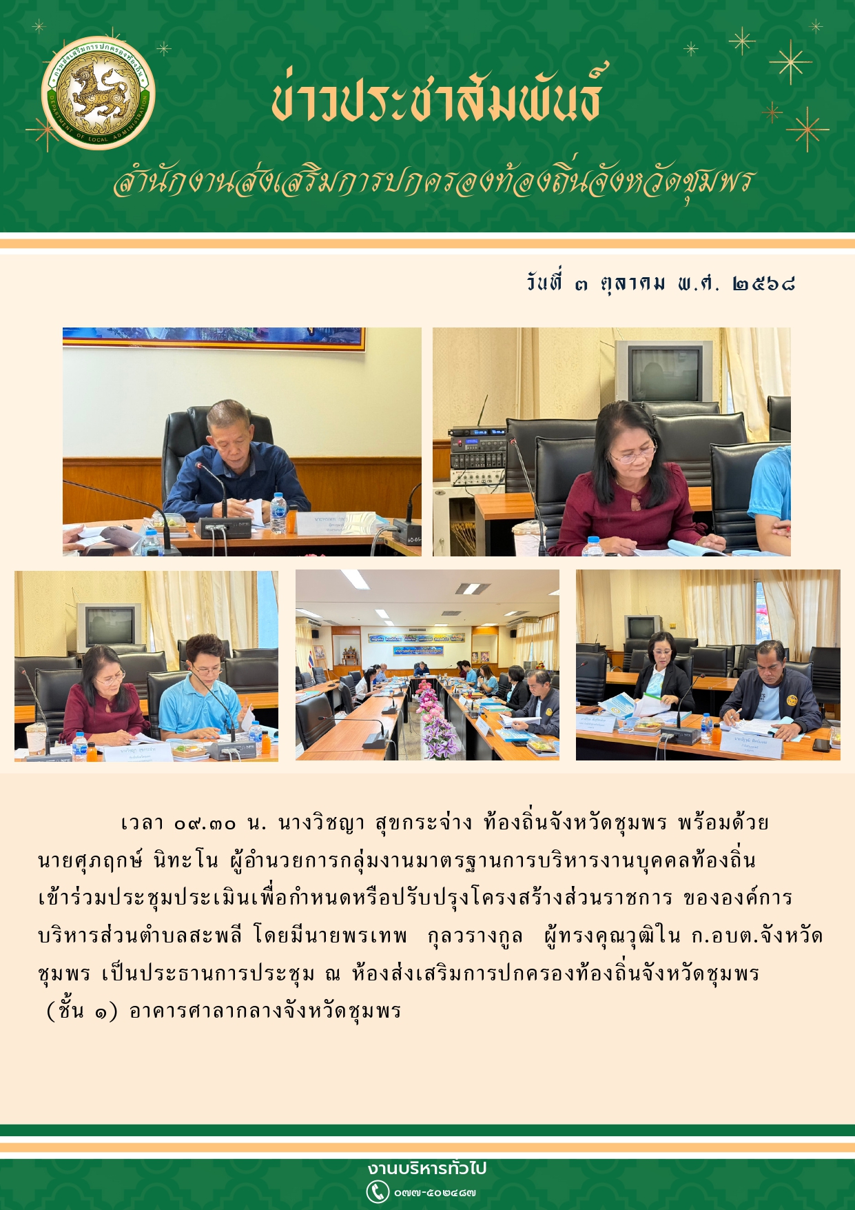 ประชุมคณะกรรมการพนักงานส่วนตำบลจังหวัดชุมพร (ก.อบต.จังหวัดชุมพร) ครั้งที่ 9/2568