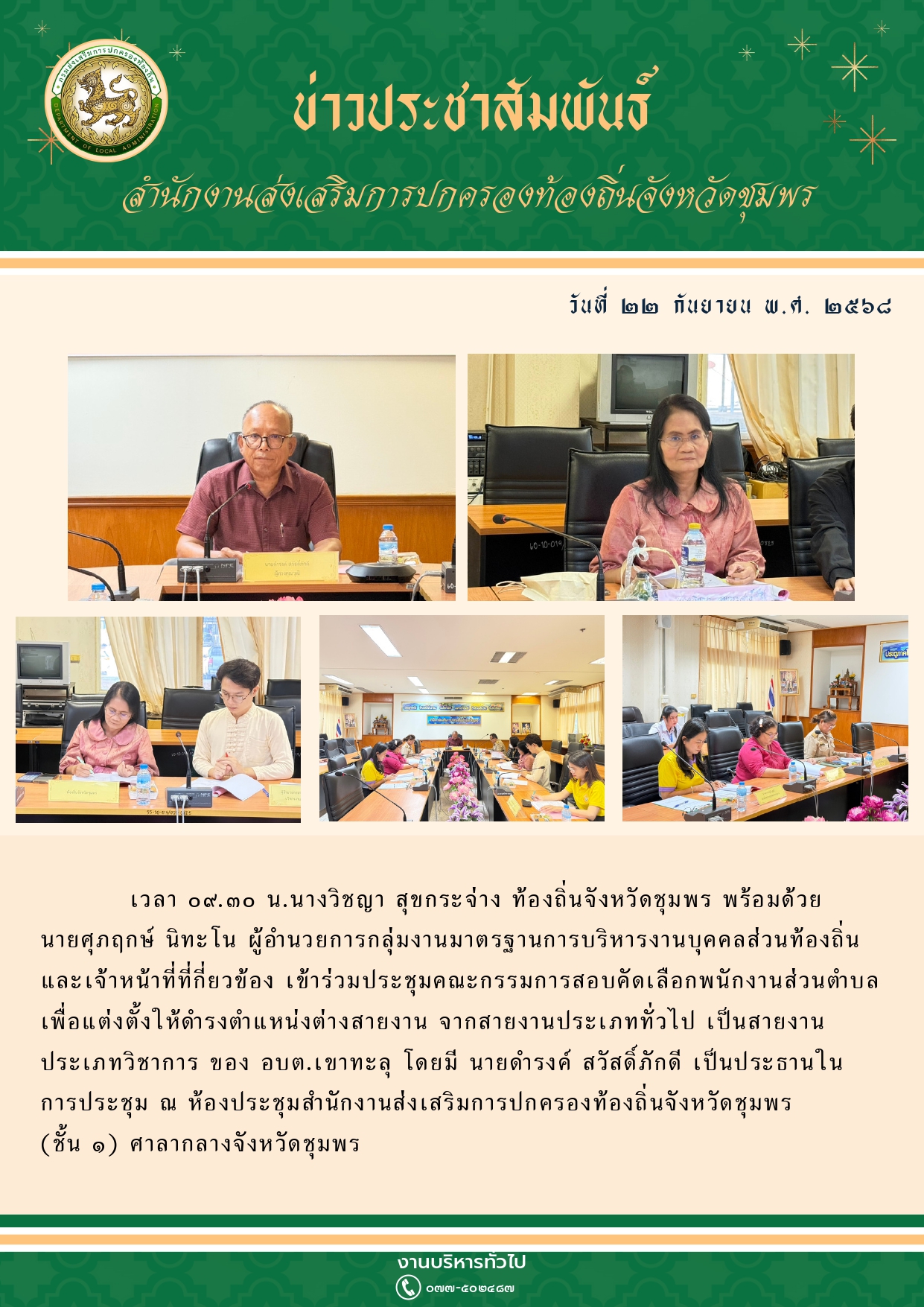 ประชุมคณะอนุกรรมการการโอนพนักงานส่วนตำบล กรณีที่มีเหตุผลความจำเป็นระดับจังหวัด จังหวัดชุมพร ครั้งที่ 1/2568